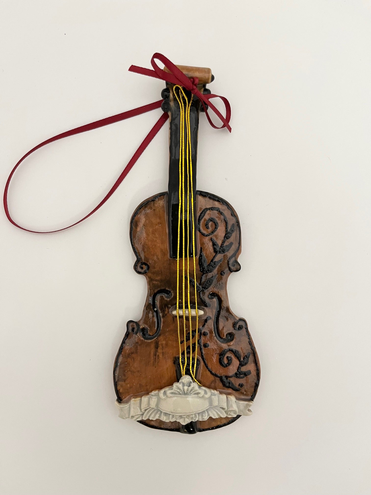 This studio made ornament is beautifully crafted and trimmed with 22k gold. Can be personalized.