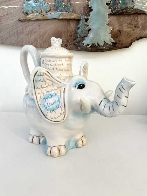 This teapot is a must for your collection. With beautiful watercolor blue touches it is a piece to talk about!