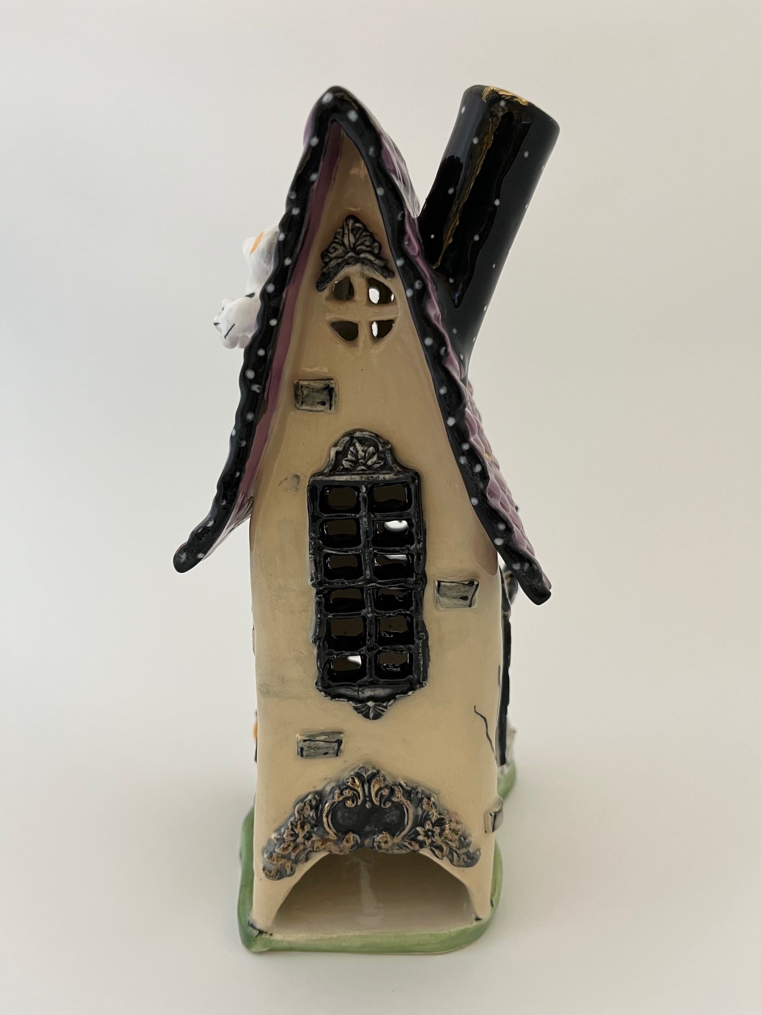 This studio made candle house is perfect for your spooky collection! Trimmed with 22k gold.