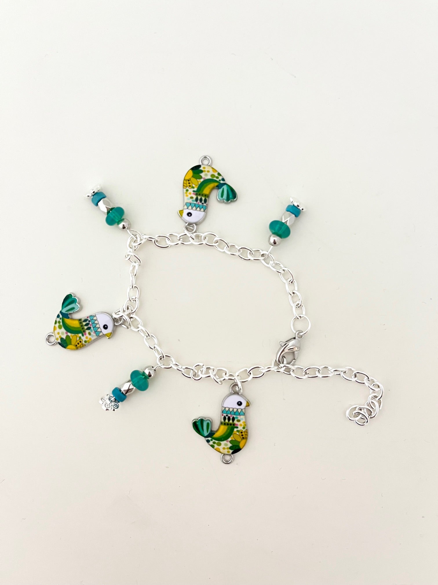 Create these super cute charm bracelets with choices of metal elephant charms, bird charms or evil eye charms.