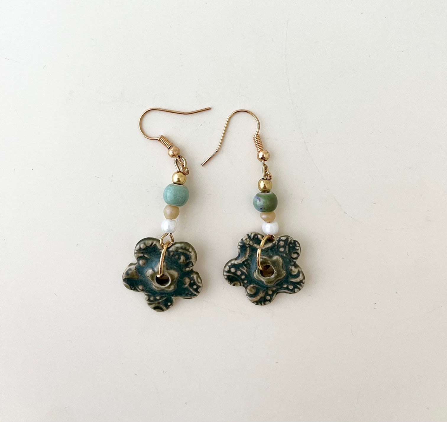 Create these unique earrings with our studio made flower bead and high quality glass beads.