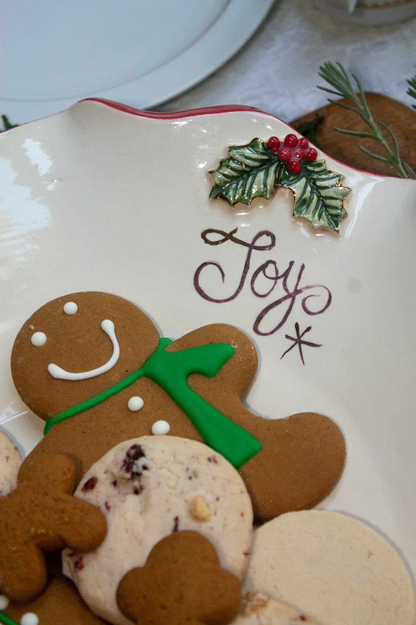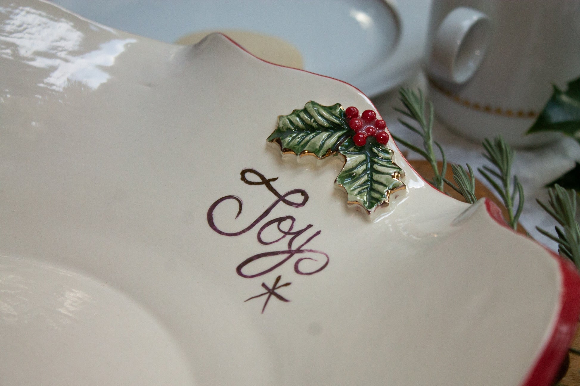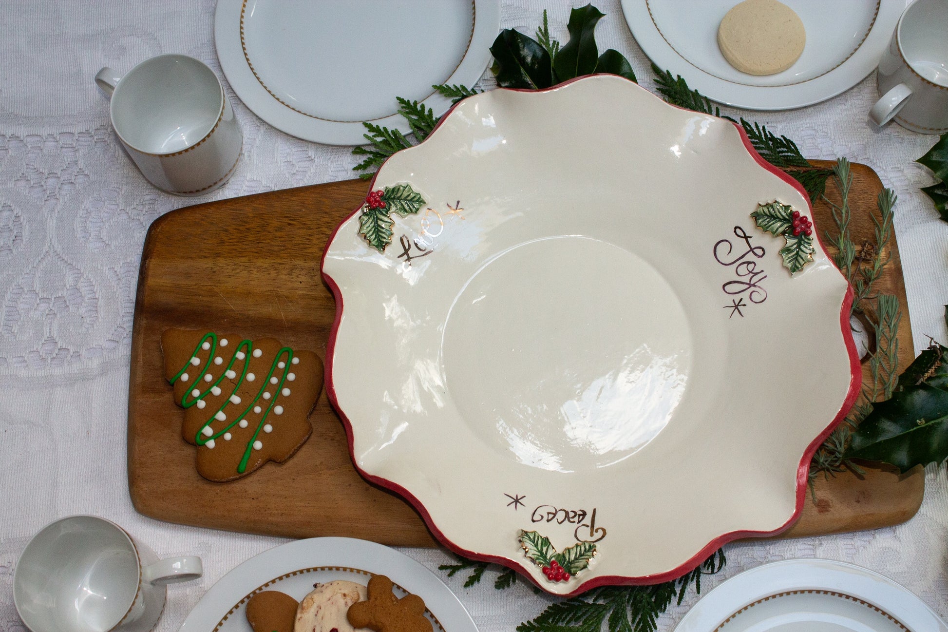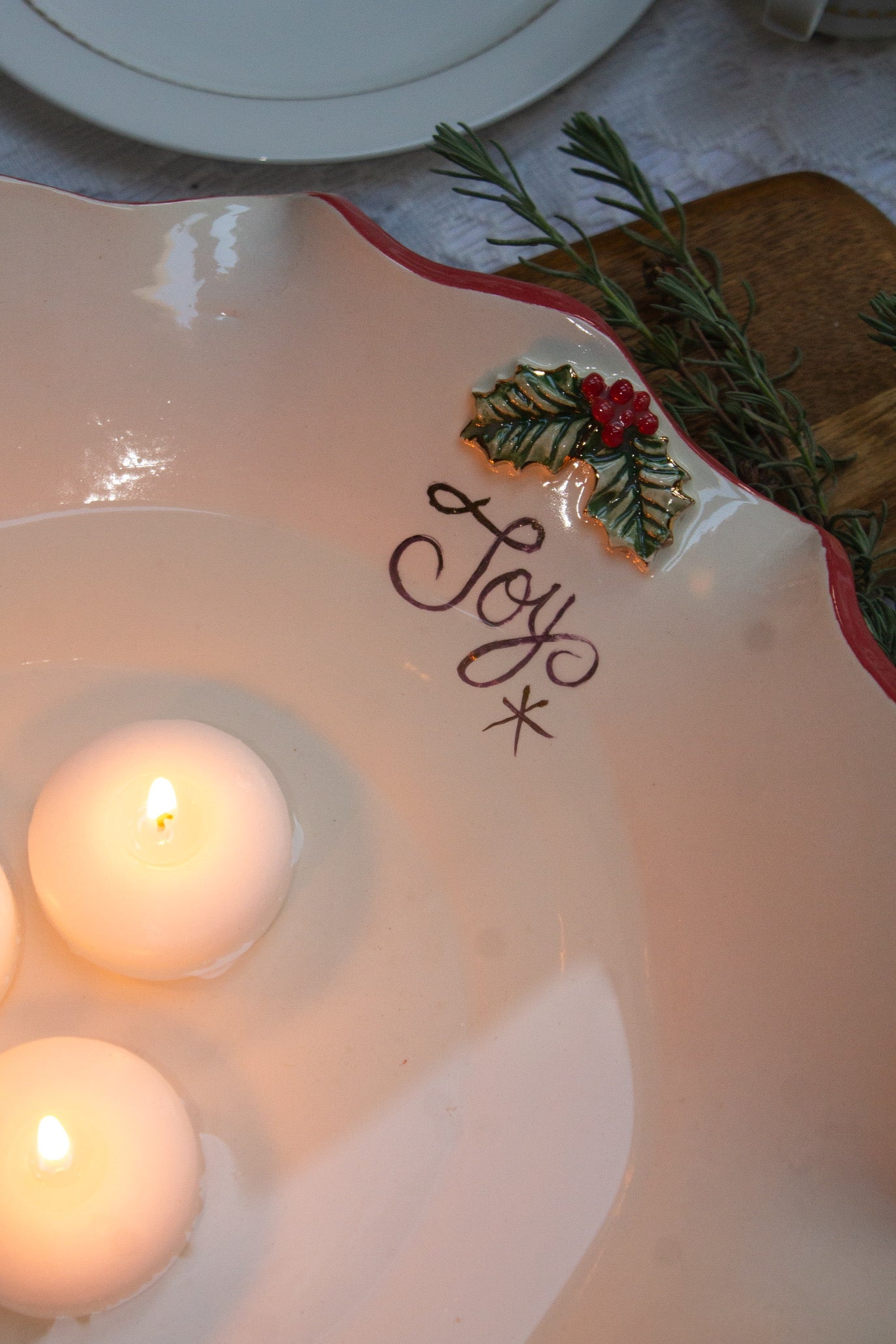 This scalloped bowl is perfect for your holiday table. Serve your favorite holiday baking or float some candles for a warm glow. Trimmed with 22k gold.