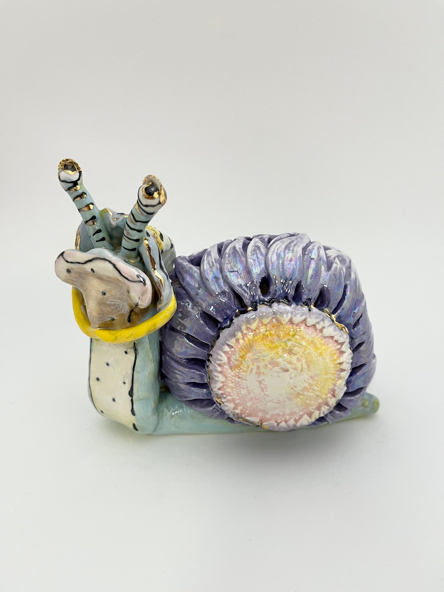 This studio made snail is amazing. Add the battery string lights to see it glow! Trimmed with 22k gold.
