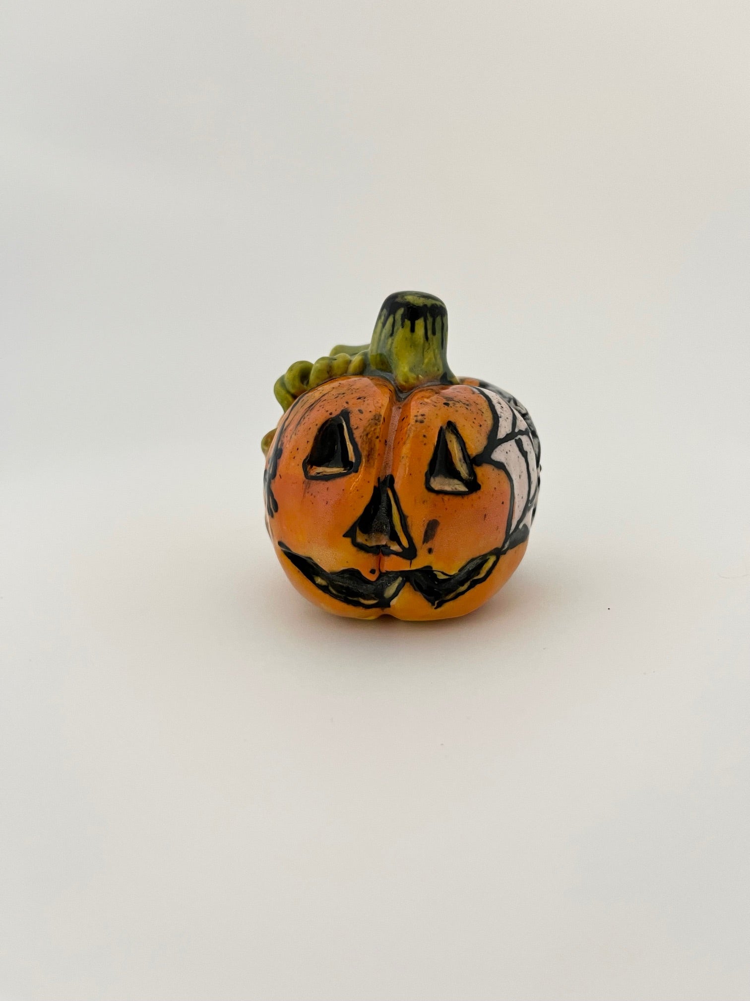This studio made pumpkin figural is inspired by Halloweens of the past!